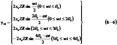 式(8-9)表明面積傅里葉變換的基波是一個(gè)與Z相關(guān)的正弦函數(shù),周期為4θ0,該波形即為閥的輸入信號(hào),其周期即為閥的換向周期。當(dāng)曲為常值時(shí),不管閥心轉(zhuǎn)速大小如何變化,輸入信號(hào)始終為正弦波形;而當(dāng)曲為按一定規(guī)律發(fā)生變化時(shí)(如xv=Bsinω1t),輸入信號(hào)的波形將發(fā)生變化。反之,如果能對(duì)所需要的信號(hào)進(jìn)行幅值、頻率和平均值分解,就能對(duì)分解的信號(hào)實(shí)行獨(dú)立控制,以滿足所需信號(hào)。