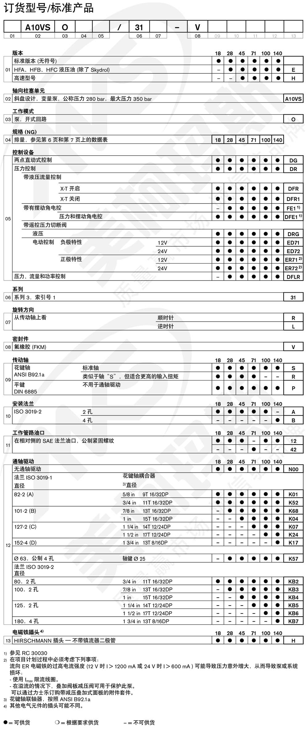– 壓力切斷和壓力控制不提供過壓保護。單獨的溢流閥在液壓系統(tǒng)中提供。