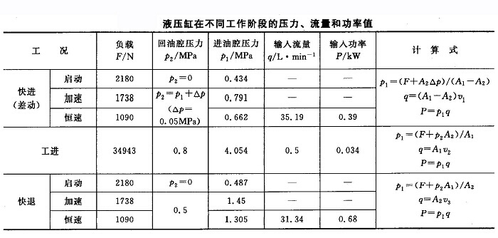 所設計的動力滑臺在工進時負載最大,在其他工況負載都不太高,初選液壓缸工作壓力p1=4MPa。