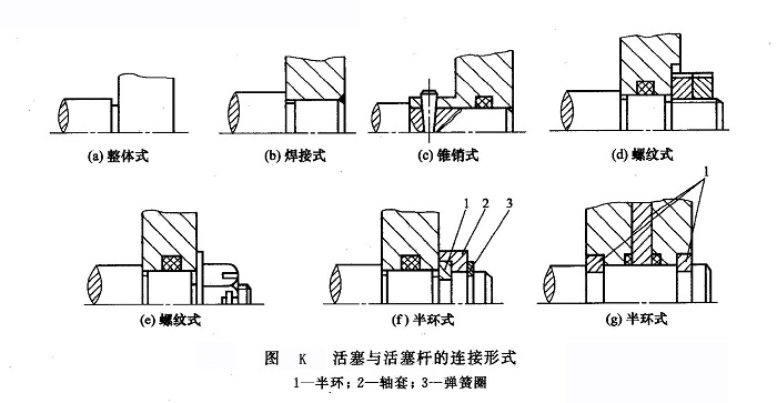 ①活塞和活塞桿的連接活塞和活塞桿的連接方式很多,如圖K所示,無(wú)論采用何種連接方式,都必須保證連接可靠。