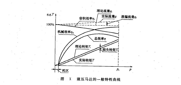 (1)一般特性曲線液壓馬達(dá)的一般特性曲線是效率、流量、轉(zhuǎn)矩等性能參數(shù)與工作壓力p之間的關(guān)系曲線,如圖X所示。由圖可見: