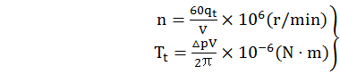 (1)變量基本原理 液壓馬達(dá)的轉(zhuǎn)速和理論轉(zhuǎn)矩分別為