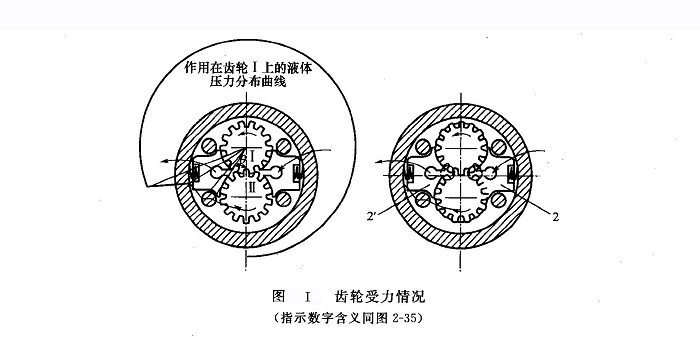 b.由于齒輪圓周大部分處在高壓下(圖I),大大減輕了齒輪軸承的徑向載荷,從而大大減小了軸承的摩擦轉(zhuǎn)矩,增加了輸出轉(zhuǎn)矩,降低了啟動(dòng)壓差△p。,改善了啟動(dòng)特性,提高了軸承和馬達(dá)的壽命。