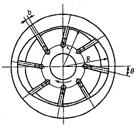 滿足分隔工作容積密封條件的最小葉片數(shù)(應(yīng)取偶數(shù))Zmin=6,從轉(zhuǎn)子強度考慮,葉片數(shù)以少為好,但為了減小流量脈動等,Z值尚須與定子滑道曲面中過渡段的形狀相匹配,一般取2=8~18,并以Z=10和12者為多。為了降低流量脈動,單作用泵的葉片數(shù)則應(yīng)為奇數(shù)(常取Z=9~21)。