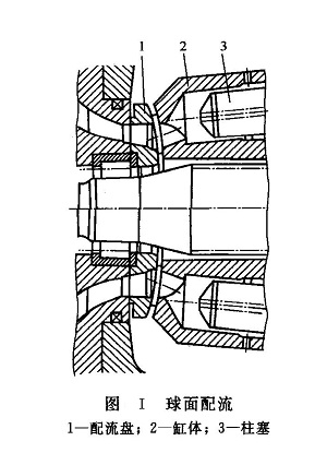 b.球面配流如圖I所示,由于配流盤(pán)1與缸體2的結(jié)合部為球面,故稱(chēng)球面配流。此結(jié)構(gòu)具有很好的自位性,能自動(dòng)補(bǔ)償。但球面加工需要專(zhuān)用設(shè)備,精度要求高,維修不便。