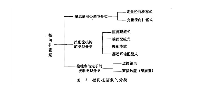 (1)分類 徑向柱塞泵的品種不像軸向柱塞泵那樣豐富。圖A所示為徑向柱塞泵的詳細分類。徑向柱塞泵多采用座閥配流和軸配流。