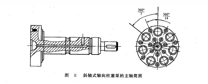 ③缸體斜軸泵的傳動主軸不穿過缸體,其缸體直徑較直軸泵小,加上側(cè)向力對缸體的傾翻作用小,故配流副的工況比直軸泵好些,許用轉(zhuǎn)速也高一些。