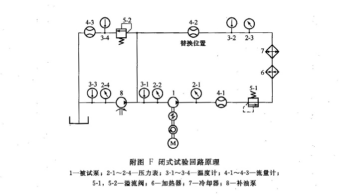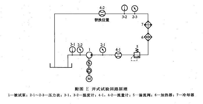 a.齒輪泵試驗應(yīng)具備符合附圖E或附圖F所示試驗回路的試驗臺。